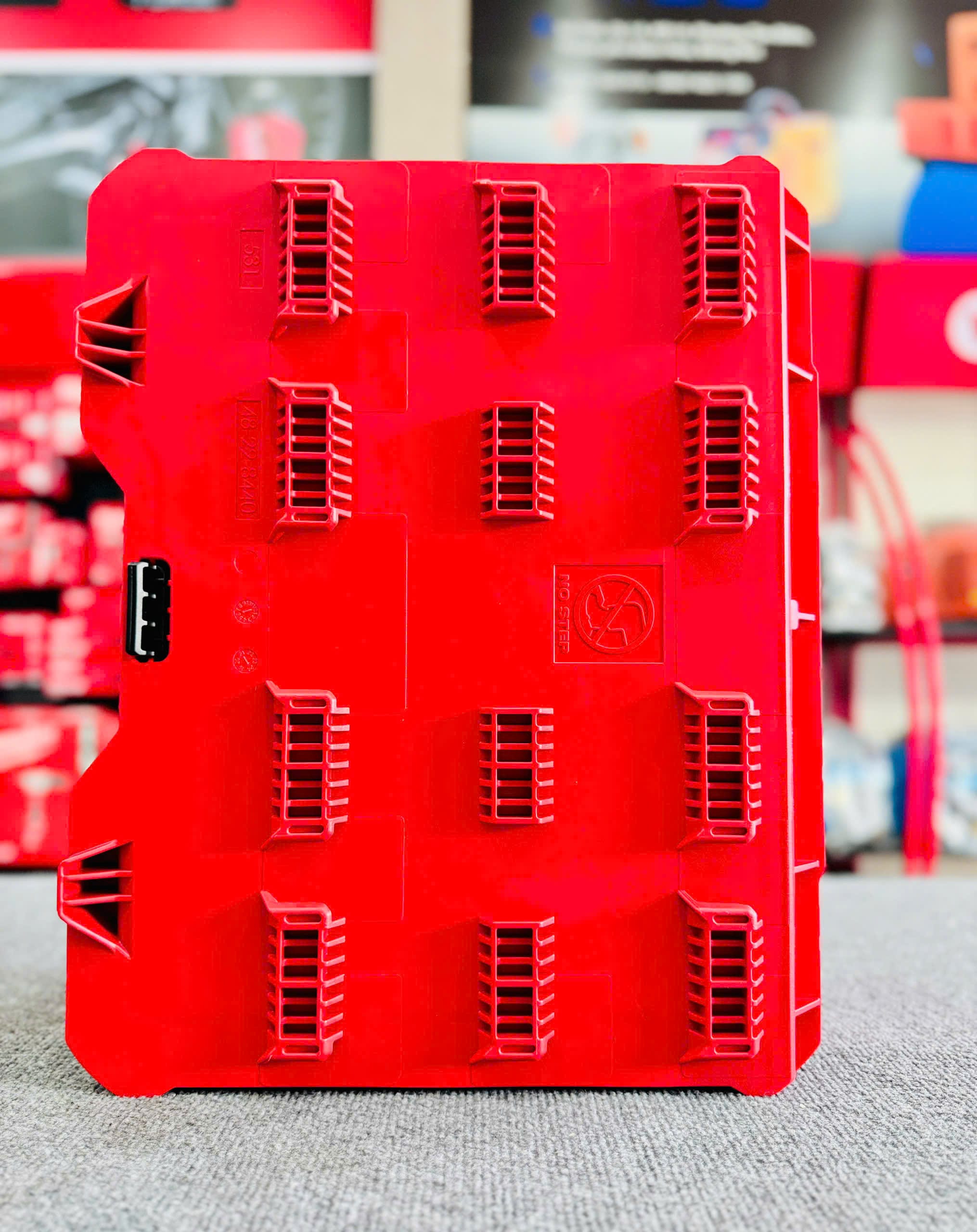 Khả năng treo tường: Hộp được thiết kế với các điểm gắn kết chuyên dụng, cho phép bạn dễ dàng treo nó lên tường khi sử dụng cùng với Tấm gắn tường PACKOUT™ (Mounting Plate). Điều này giúp tối ưu hóa không gian làm việc trong nhà xưởng, gara hay trên xe van của bạn.